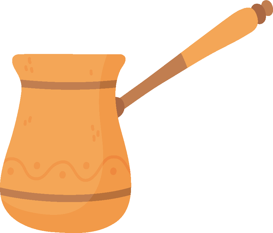 In addition to a coffee grinder, you need room-temperature water with low mineralization (50–150 mg/L), freshly roasted coffee beans, a stirring spoon, and the cezve itself. We recommend a copper or ceramic cezve.